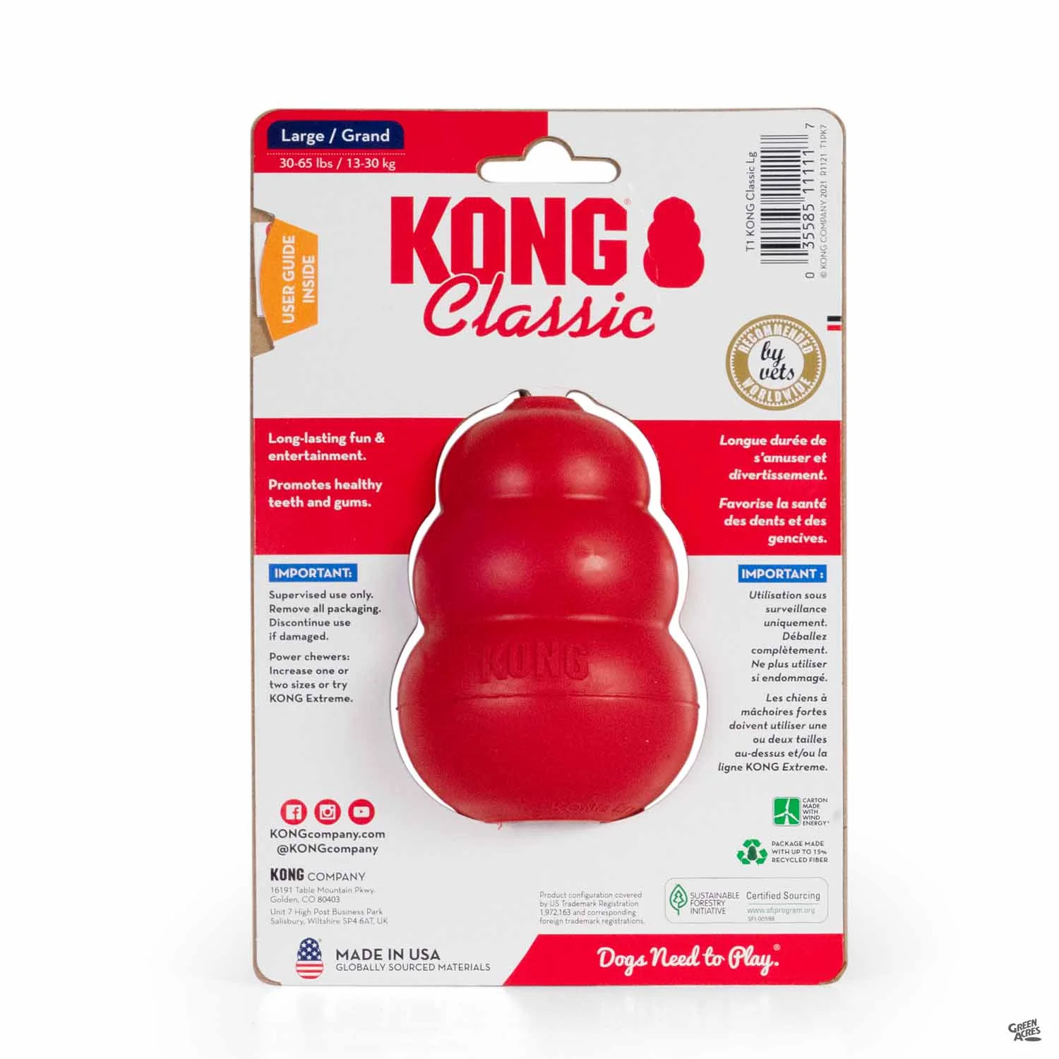 The classic durable dog toy that satisfies dogs' instinctual needs to chew and play. Irregular shape creates an erratic bounce. Ultra-durable, natural rubber withstands extended chewing. Stuff with treats for a fun reward.