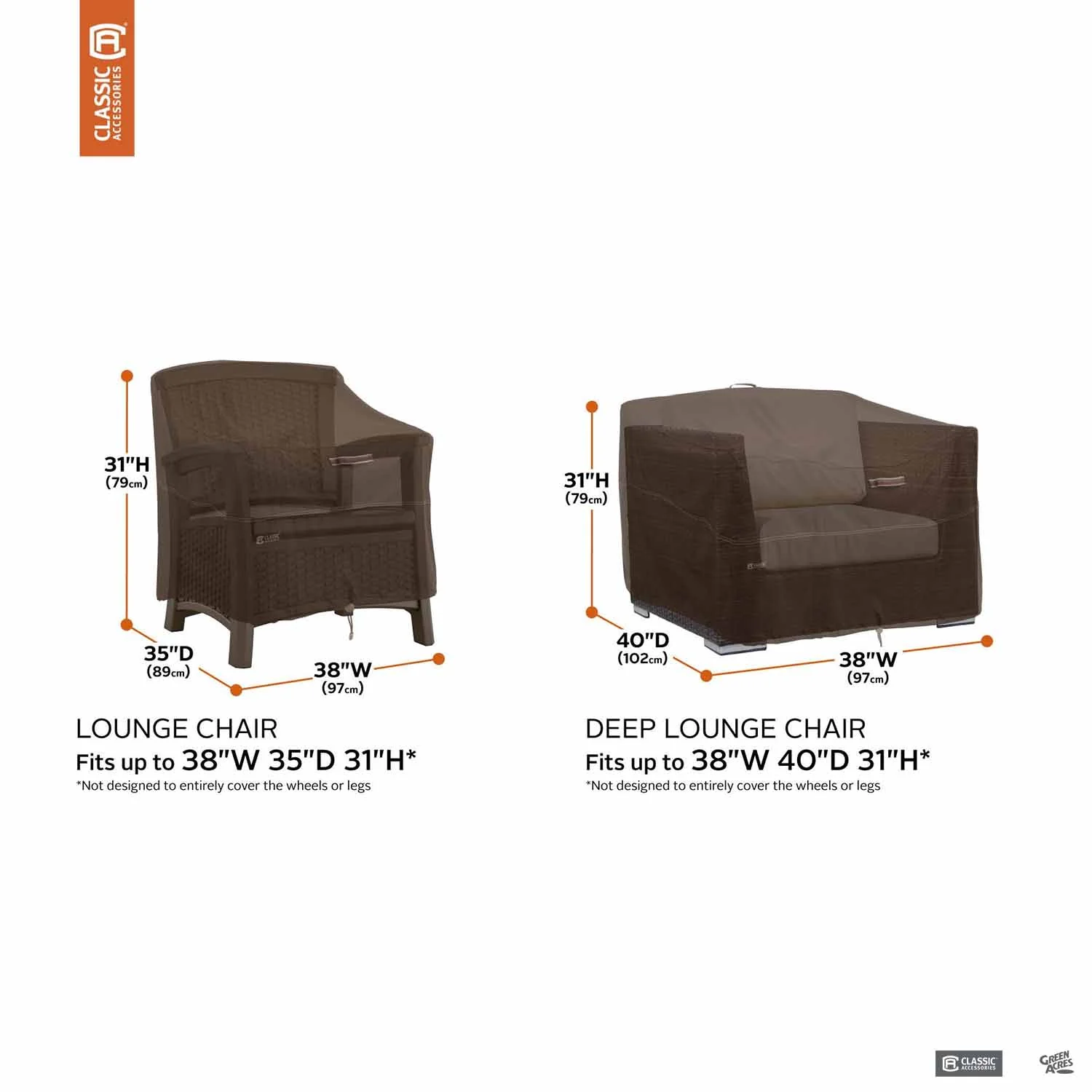 Premium outdoor Dark Cocoa covers made of durable woven polyester and water resistant fabric. Padded handles for easy removal with elastic hem cords and buckles for a snug fit.